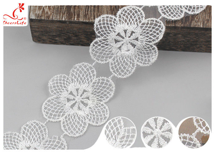 Δαντελένια διακοσμητικά με κεντημένα λουλούδια από τούλι με νάιλον πλέγμα Azo Free Dyeing Pass OEKO-TEX